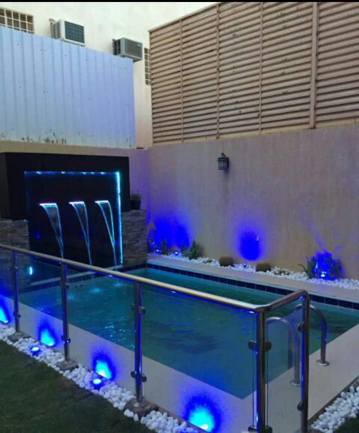 نقوم بتصميم مسابح خرسانية، مسابح جاهزة (Fiberglass)، ومسابح صغيرة للحدائق أو الأسطح، حسب متطلبات العميل.